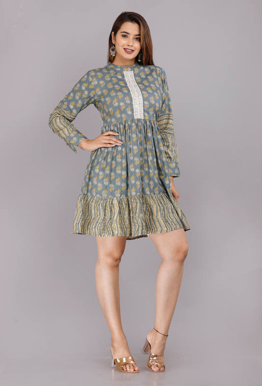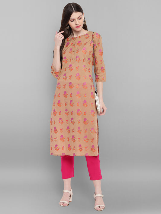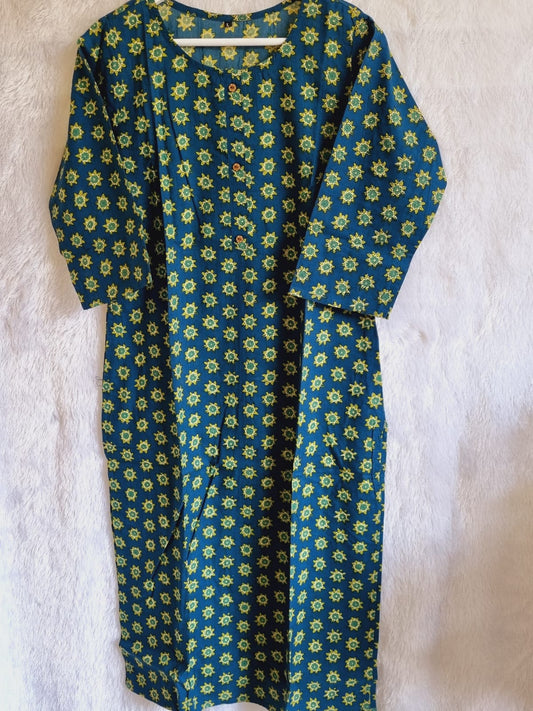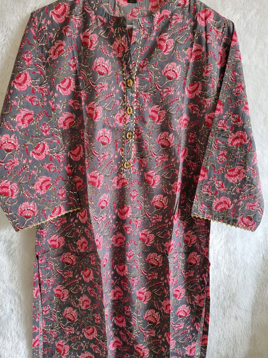Kalamkari Print Pure Cotton Kurti with Delicate Dori Detailing