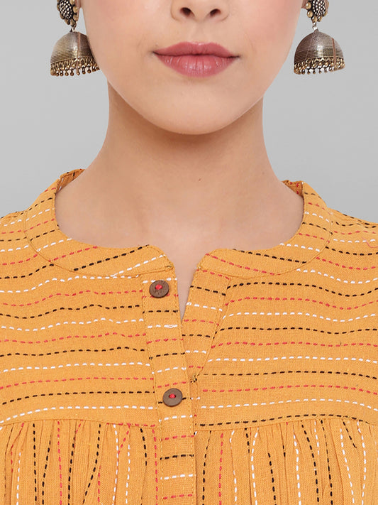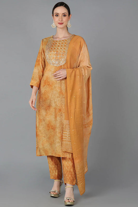 Mustard Silk Blend Yoke Design Kurta, Pant, Dupatta Set