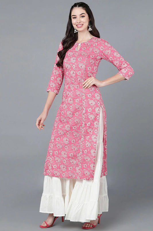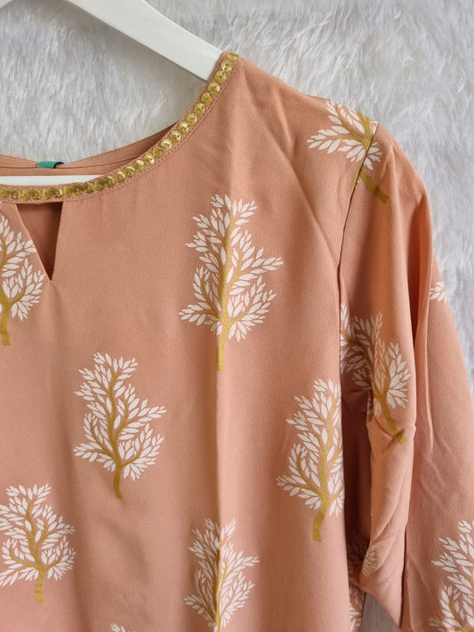 Peach Straight Kurta with Hand Print and Gold Foil Accents