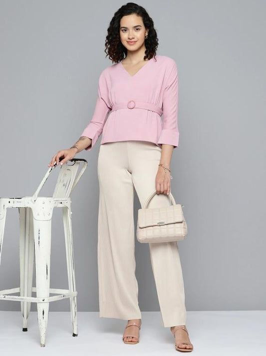 Pink Kurta Pant With Dupatta Set – Silk Blend with Yoke Design
