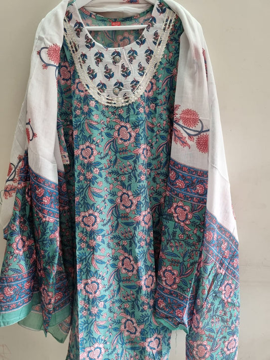 Pure Cotton Blue & White Kurta, Pant Dupatta Set