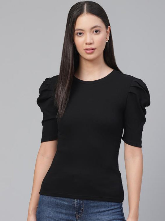 Stretchable Puff Sleeves Black Top