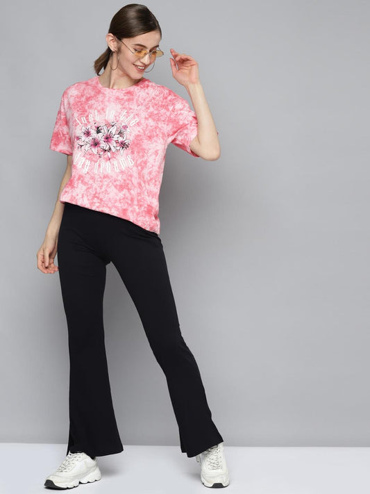 Pure Cotton Woman Printed Light Pink T-shirt