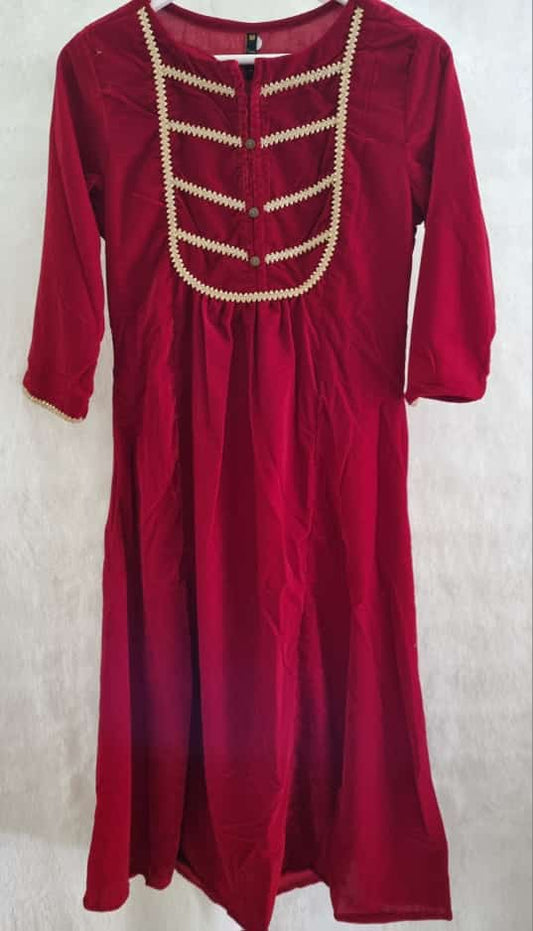 Maroon Velvet Kurta With Palazzo & Dupatta Set