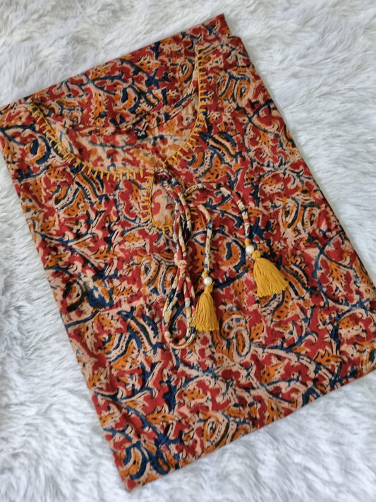 Kalamkari Print Pure Cotton Kurti with Delicate Dori Detailing